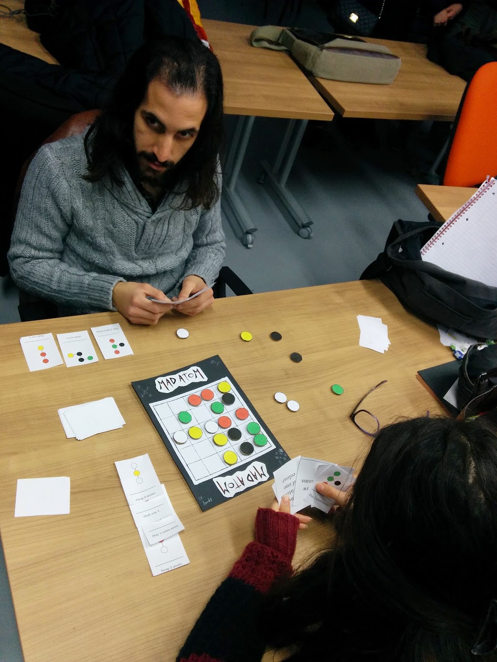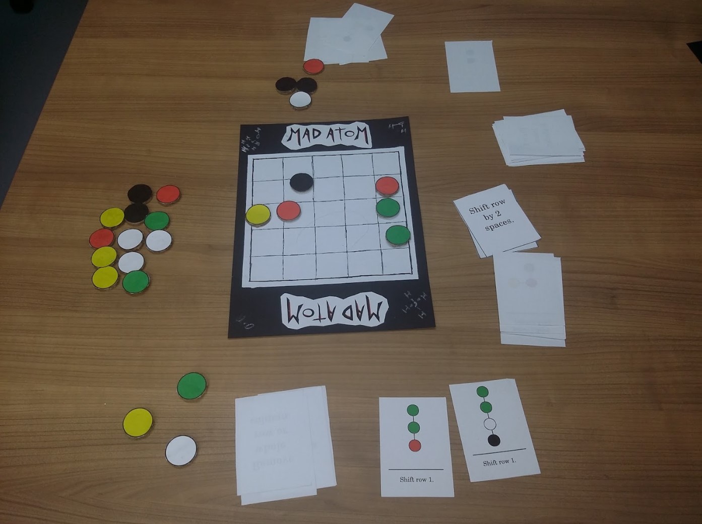 Mad Atom is a two player board game where scientists compete in creating life using basic molecules. It was created in 48 hours by Bernard Brincat and Simon Cutajar at the Malta Global Game Jam 2015.